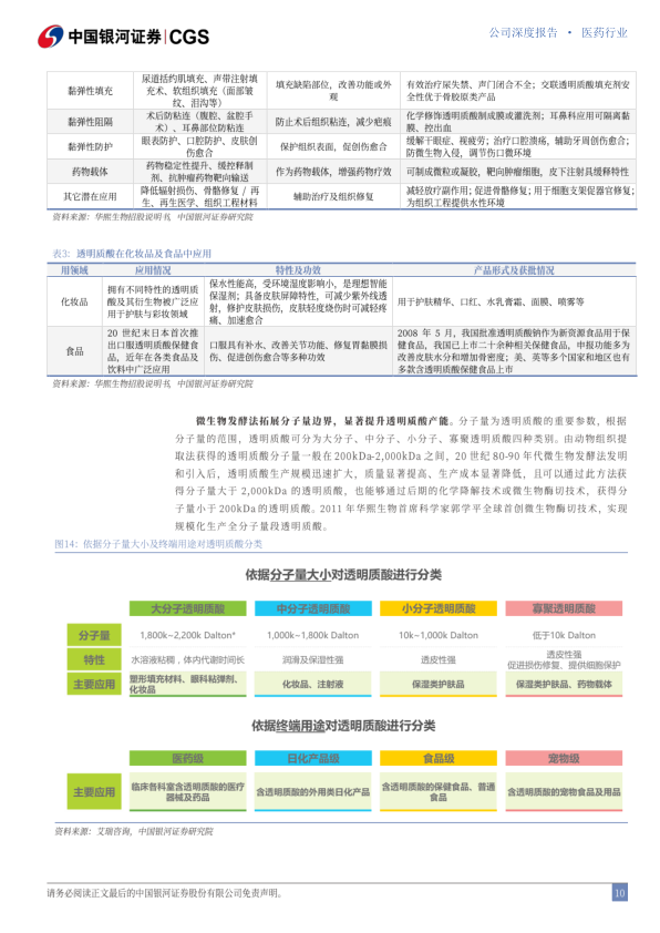 全球透明质酸龙头再启航,锐意革新有望迎来经营拐点。华熙生物是一家基于生物活性产品的平台型公司,完整的产业链形成了较强的内部协同。作为全球规模最大的透明质酸供应商,公司以透明质酸为基石,构建了从原料到产品的全产业链体系,并通过创新技术转化将产品边界拓展至透明质酸衍生物、麦角硫因、γ-氨基丁酸等多元生物活性物,未来有望充分受益国内消费升级下生命健康产品需求增长。同时依托合成生物领域的产业转化优势,公司前瞻性布局糖生物学和细胞生物学两大生命科技新方向,开启第三次战略升级。我们认为公司前期对于各项业务的战略变革效果预计将逐渐显现,有望于近期迎来经营拐点,核心业务经营有望企稳回升。