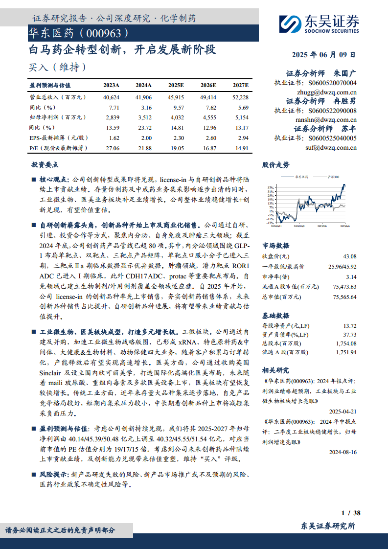 华东医药(000963):白马药企转型创新,开启发展新阶段