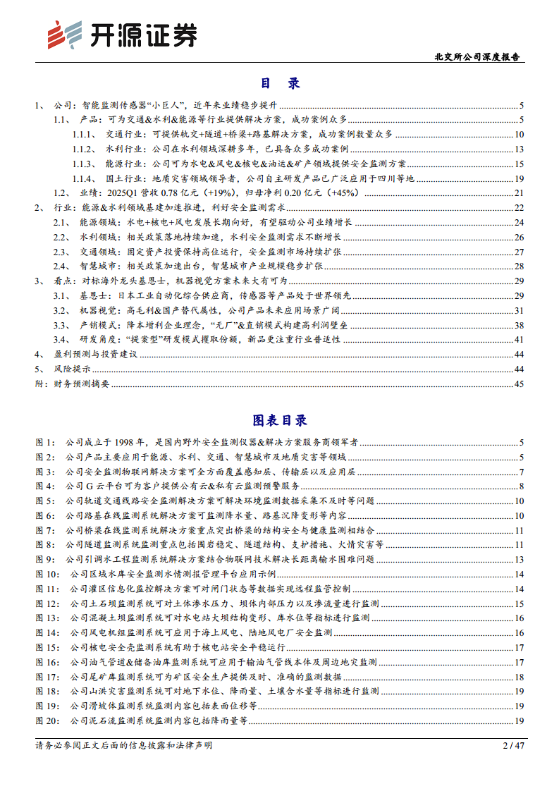 - 能源行业解决方案与案例: 公司为水电、风电、核电、油气储运和矿产领域提供安全监测方案,包括水电站大坝安全监测、风力发电站安全监测、核电站安全监测、油气储运安全监测和尾矿库安全监测等。截至2025年3月,公司在能源行业拥有成功案例35个,其中水电站20个,抽水蓄能电站12个。