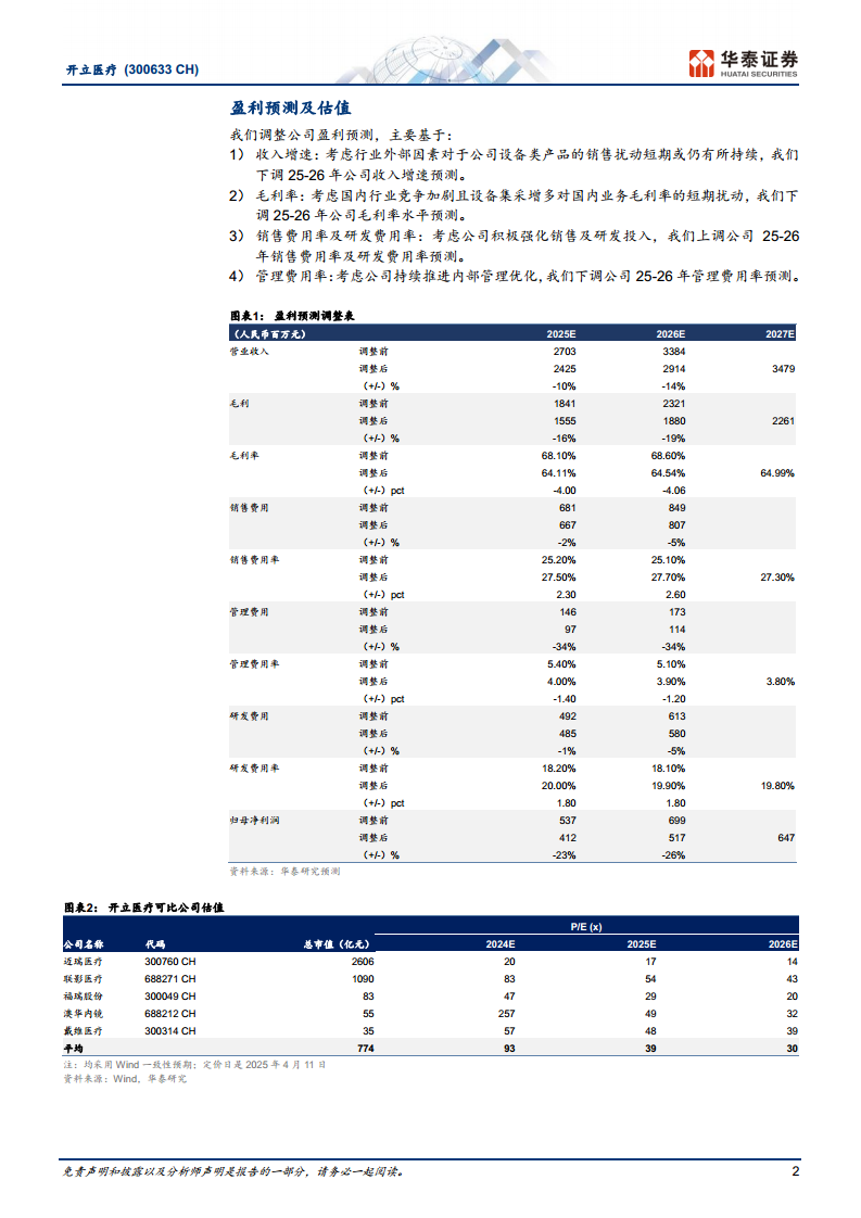 华泰研究维持开立医疗“买入”投资评级,目标价为40.03元人民币。尽管短期业绩承压,但基于公司作为国产超声及内窥镜行业领跑者的地位、多样化的产品布局以及持续强化的国内外推广,研究员看好其长期发展潜力,并相应调整了2025-2027年的盈利预测。