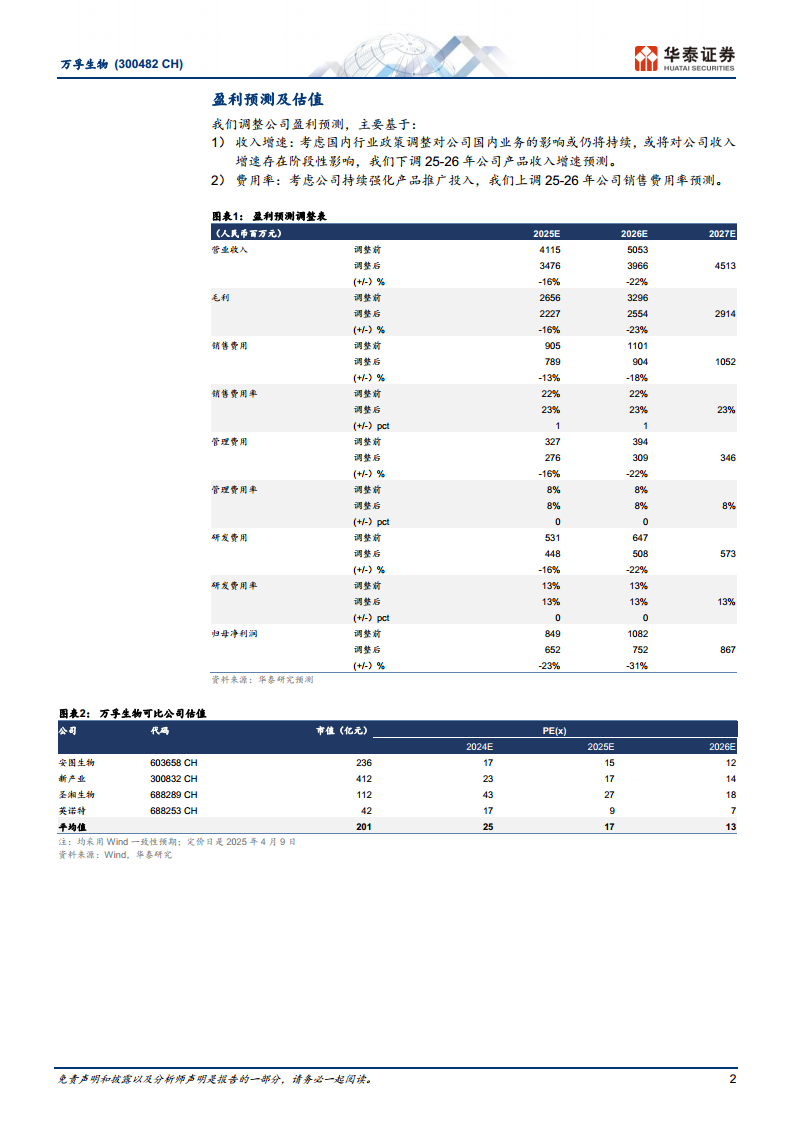 万孚生物2024年业绩虽受国内政策调整和北美市场竞争加剧影响,略低于市场预期,但其国际部业务表现强劲,实现约30%的收入增长,成为公司核心增长引擎。公司通过优化产品结构,使得毛利率稳中有升至64.2%,经营性现金流持续改善。展望2025年,公司凭借丰富的产品布局和国内外市场竞争力的提升,预计将实现稳健发展,尤其看好国际业务、母公司国内业务以及美国子公司业务的向上趋势。尽管华泰研究基于行业政策和推广投入调整了未来盈利预测,但仍维持“买入”评级,并设定目标价27.07元,体现了对公司长期竞争力和市场地位的信心,同时提示了核心产品销售和招标降价的潜在风险。