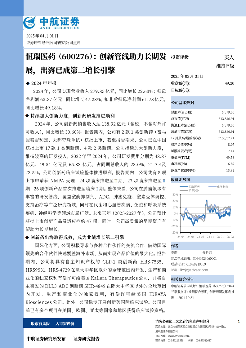 恒瑞医药(600276):创新管线助力长期发展,出海已成第二增长引擎