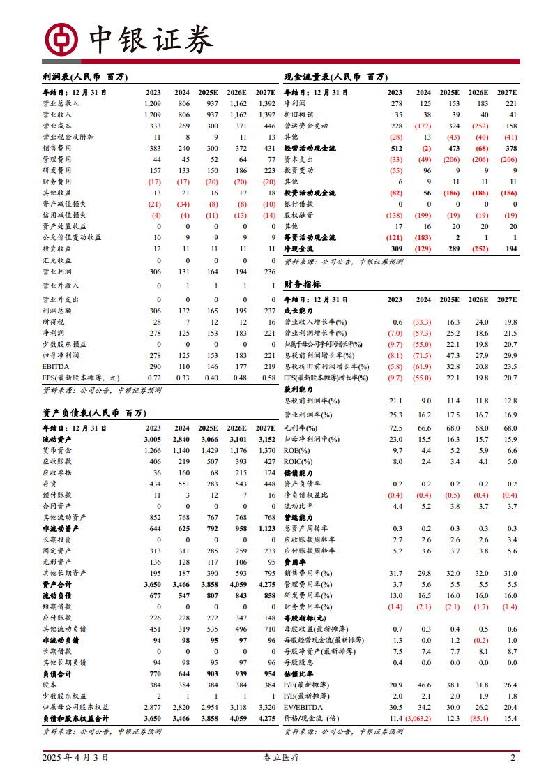 春立医疗2024年业绩受集采续标和医疗反腐影响显著下滑,但第四季度收入下滑收窄,显示出经营韧性。公司持续高强度研发投入,积极布局新材料和新产品管线,为长期发展奠定基础。尽管盈利预测因集采价格压力而大幅下调,但报告认为集采风险已逐步释放,当前估值合理,市场悲观预期已充分反映。鉴于骨科行业的老龄化驱动和公司持续的创新投入,报告维持“买入”评级,看好公司长期发展潜力,但需关注集采政策和手术量恢复不及预期的风险。