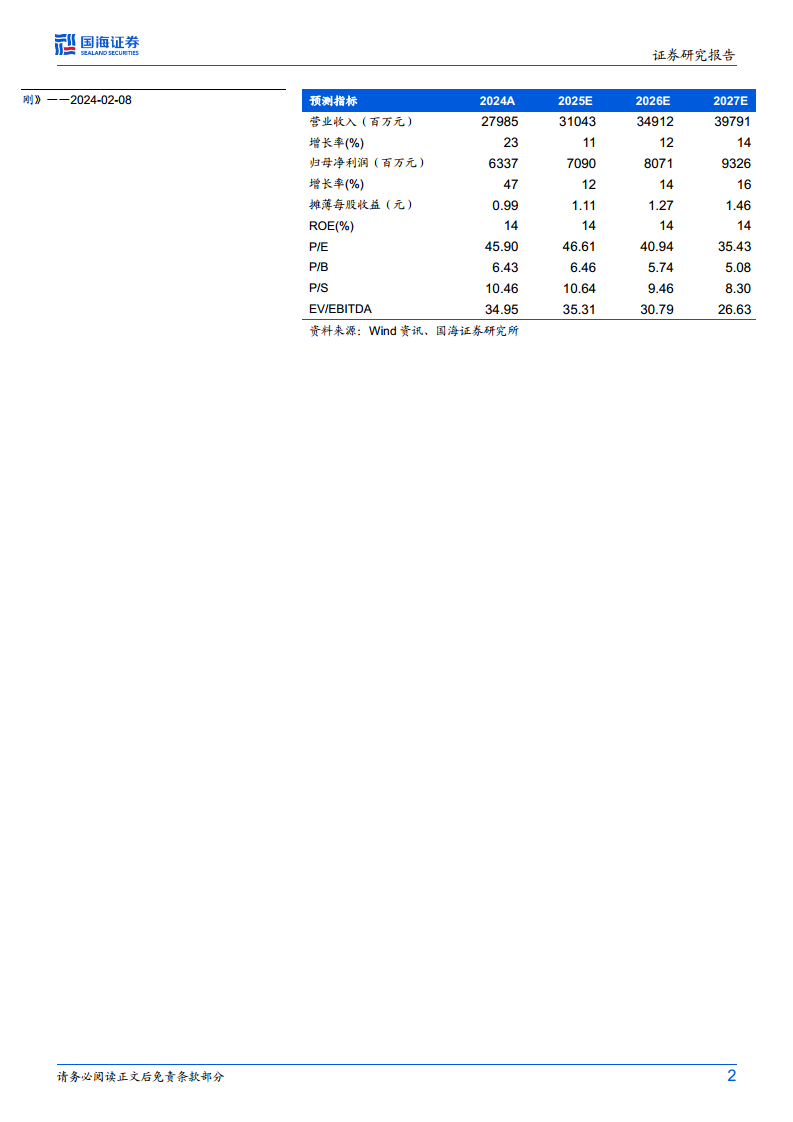 国海证券对恒瑞医药的未来业绩持乐观态度。预计2025-2027年公司营业收入将分别达到310亿元、349亿元和398亿元,归母净利润分别为70.9亿元、80.7亿元和93.3亿元。对应的预测市盈率(PE)分别为47倍、41倍和35倍。鉴于公司创新药收入的高速增长以及创新药出海作为第二增长曲线的巨大潜力,国海证券维持对恒瑞医药的“买入”评级。