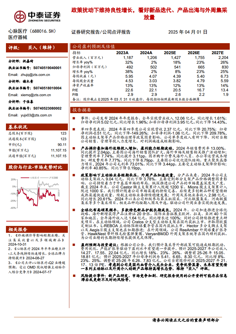 心脉医疗(688016):政策扰动下维持良性增长,看好新品迭代、产品出海与外周集采放量