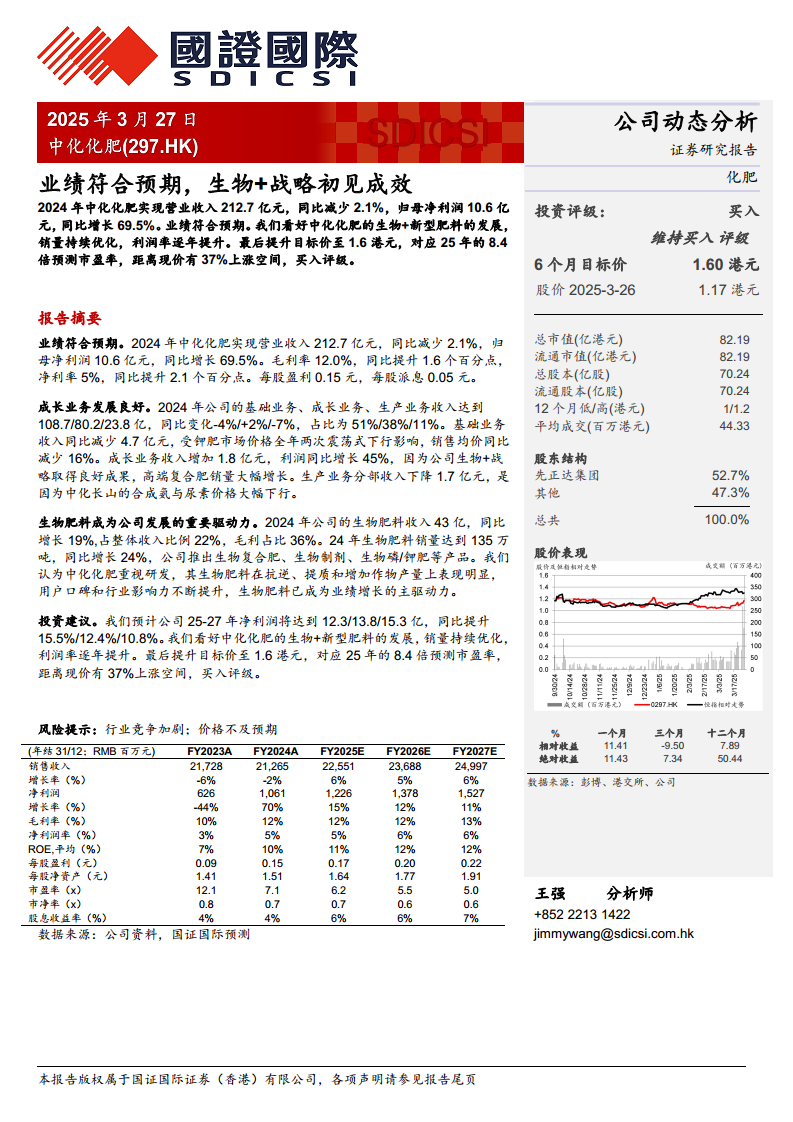 报告对中化化肥的未来发展持乐观态度,预计2025-2027年净利润将持续增长,并维持“买入”评级。公司在生物+新型肥料领域的持续投入和市场优化策略,有望进一步提升销量和利润率。目标价上调至1.6港元,预示着显著的上涨空间。