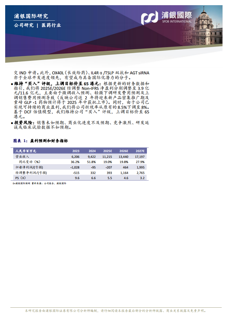 信达生物在2024年实现了显著的财务突破,提前一年实现Non-IFRS盈利,总收入和产品收入均实现高速增长,充分证明了其强大的商业化能力和运营效率。公司正积极推进国际化战略,设定了到2030年开启5个创新药国际三期临床的宏伟目标,并拥有丰富且具备全球潜力的研发管线,包括肿瘤和非肿瘤领域的多个重磅候选药物。随着多项关键临床数据即将读出和新产品密集上市,信达生物的未来增长前景广阔。浦银国际基于其稳健的财务表现和加速的国际化进程,维持“买入”评级,并将目标价上调至65港元,以反映其持续增长的潜力和市场价值。