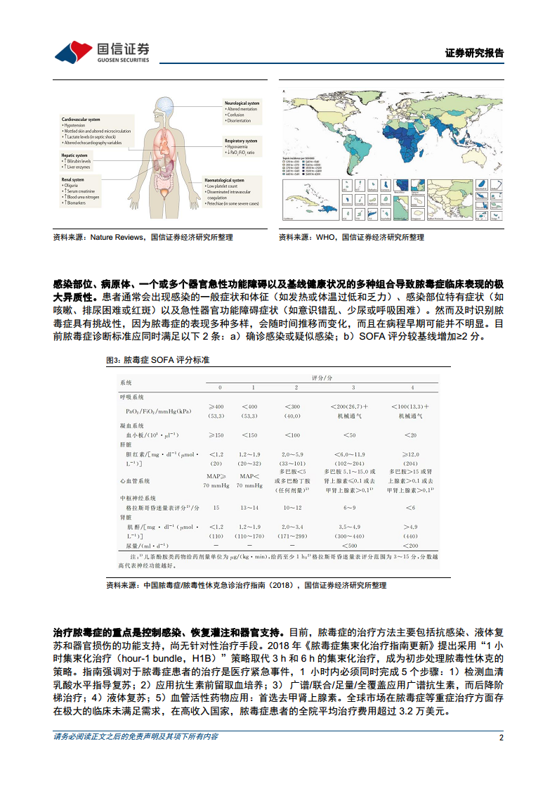 脓毒症的严峻挑战与现有治疗局限 脓毒症是全球范围内导致死亡和长期残疾的主要原因之一,其发病率和病死率极高。根据WHO官网数据,2020年全球新发脓毒症约4890万例,导致1100万患者死亡,约占全球总死亡人数的20%。在中国,成人脓毒症发病率约为236/10万人口,对应每年约330万发病数和94万死亡数。脓毒症的临床表现具有高度异质性,诊断具有挑战性,且目前治疗主要集中于抗感染、液体复苏和器官支持等对症治疗,尚无针对病因的特异性治疗手段。高收入国家脓毒症患者的平均治疗费用超过3.2万美元,凸显了巨大的临床未满足需求。