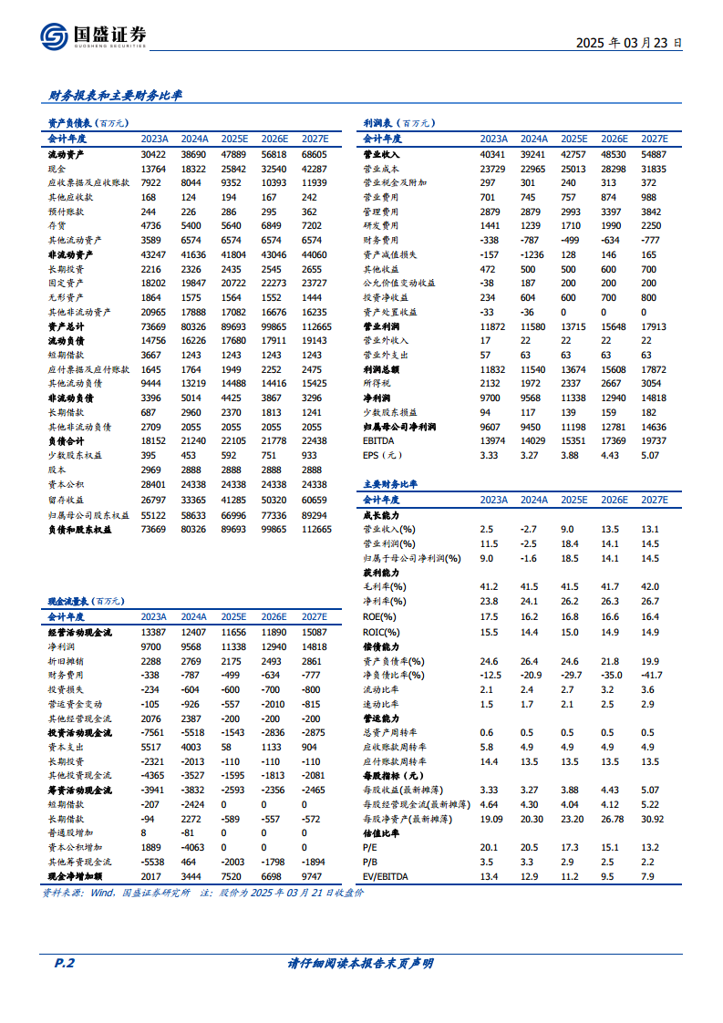 公司对2025年持续经营业务的业绩指引显示出强劲的增长信心,预计收入将达到415-430亿元,实现显著增长。为支持全球D&M产能建设,公司预计2025年资本开支为70-80亿元。同时,公司预计2025年自由现金流将达到40-50亿元,显示出良好的盈利能力和现金流管理水平。