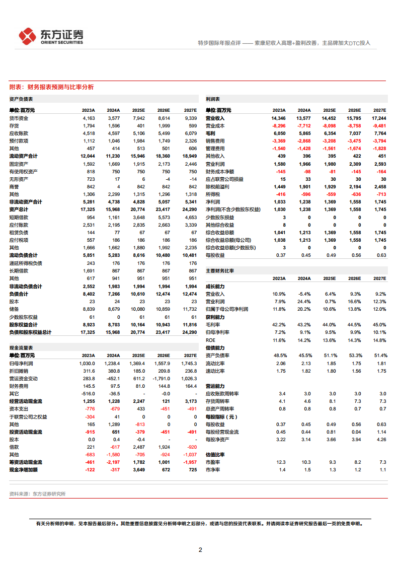 面对市场变化,特步国际的战略重心明确。专业运动品牌索康尼正处于品牌势能上升期,通过渠道拓展、营销强化和产品矩阵优化,持续贡献高增长和高利润。与此同时,特步主品牌虽然在2024年下半年增长有所放缓,但公司已明确加大对主品牌DTC战略的投入,旨在通过更深入、个性化的客户互动,提升品牌忠诚度和客户保留率,以实现长期可持续发展。整体而言,公司通过多品牌战略和DTC模式的深化,积极应对市场挑战,寻求新的增长动能。