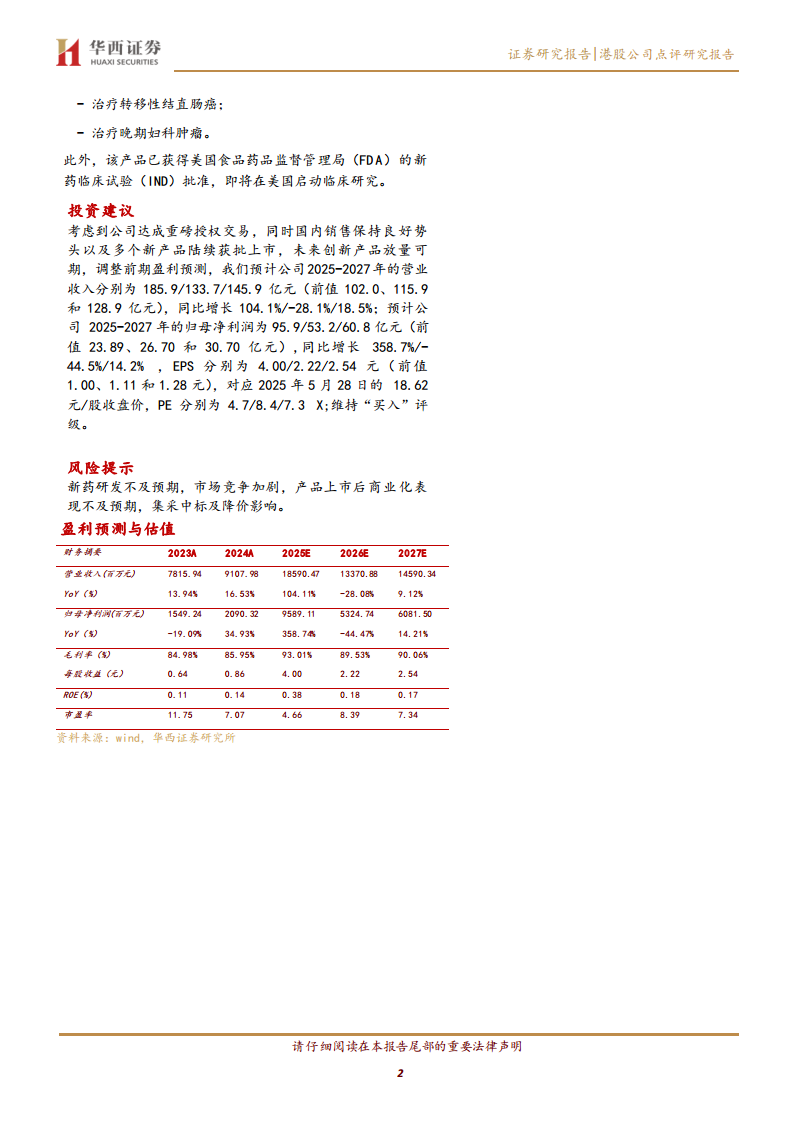 归母净利润预测: 归属于母公司股东的净利润预测更是实现了跨越式增长,预计2025年至2027年分别为95.9亿元、53.2亿元和60.8亿元。相较于此前预测的23.89亿元、26.70亿元和30.70亿元,2025年的净利润预测增长了301.4%,同比增长率高达358.74%。这表明授权交易的利润贡献远超预期,极大地提升了公司的盈利能力。