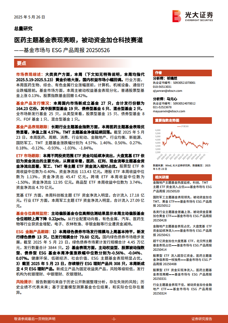 基金市场与ESG产品周报:医药主题基金表现亮眼,被动资金加仓科技赛道