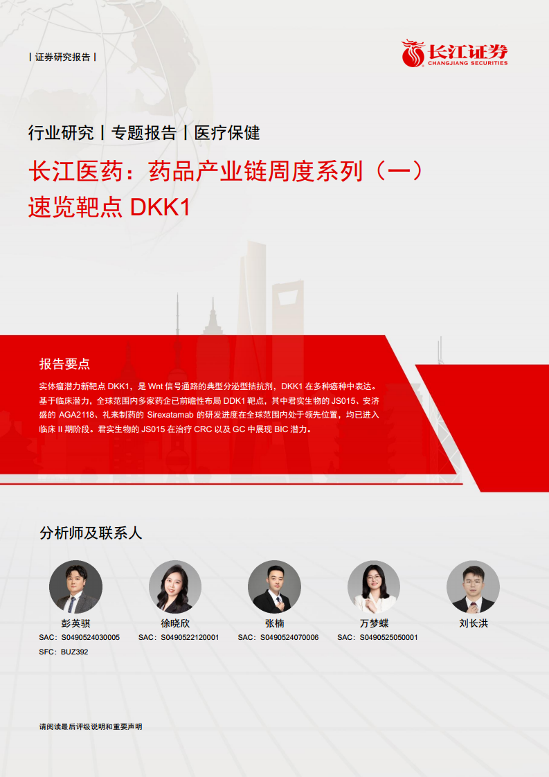 长江医药:药品产业链周度系列(一)速览靶点DKK1