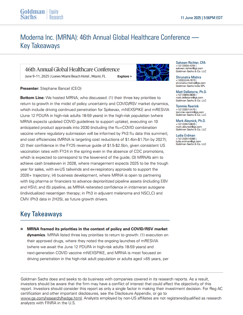 莫德纳公司(MRNA):第46届全球医疗保健会议——要点