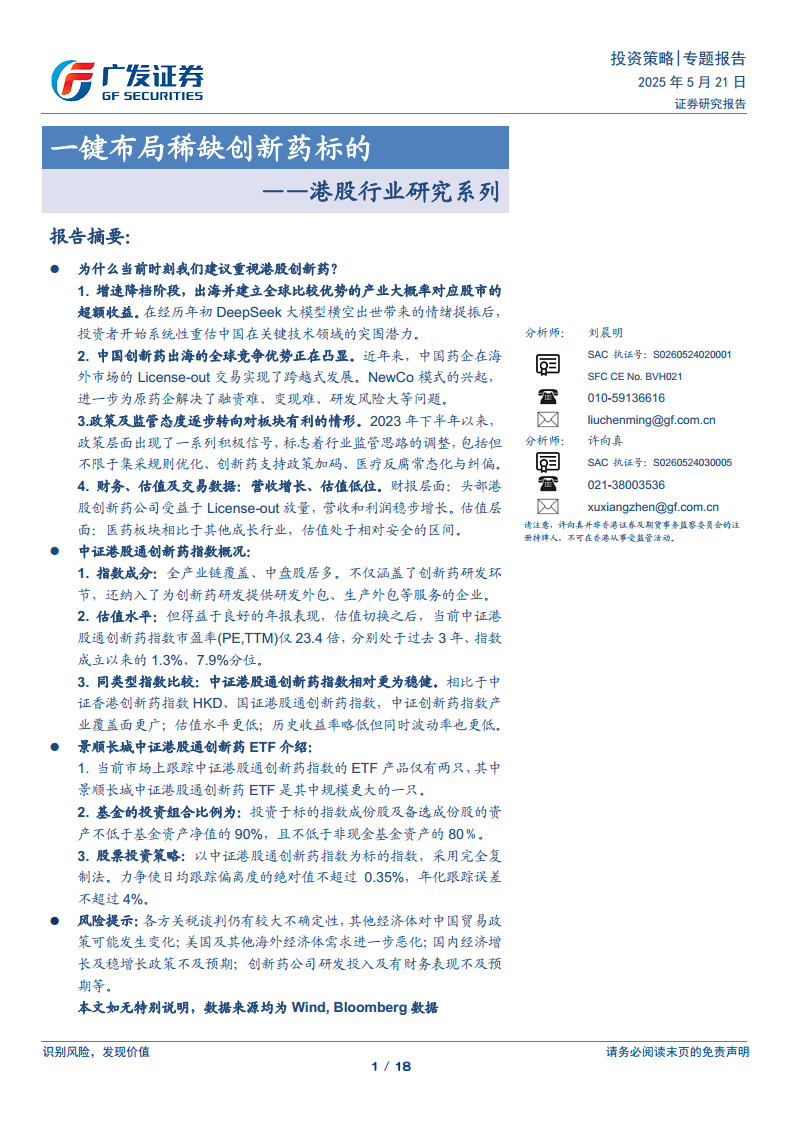 本报告深入分析了港股创新药板块的投资价值,强调在当前全球经济增速放缓、中国创新药出海优势凸显、政策环境持续改善以及创新技术赋能的多重利好下,该板块具备显著的配置价值。尽管市场短期内受到“对等关税”等因素冲击,但港股创新药板块估值已处于历史低位,提供了良好的布局窗口。中证港股通创新药指数作为全面覆盖创新药产业链的指数,其稳健性和低估值特点使其成为优选。景顺长城中证港股通创新药ETF为投资者提供了便捷、高效的投资工具,以捕捉这一领域的增长机遇。然而,投资者仍需审慎评估宏观经济、贸易政策及公司研发表现等潜在风险。