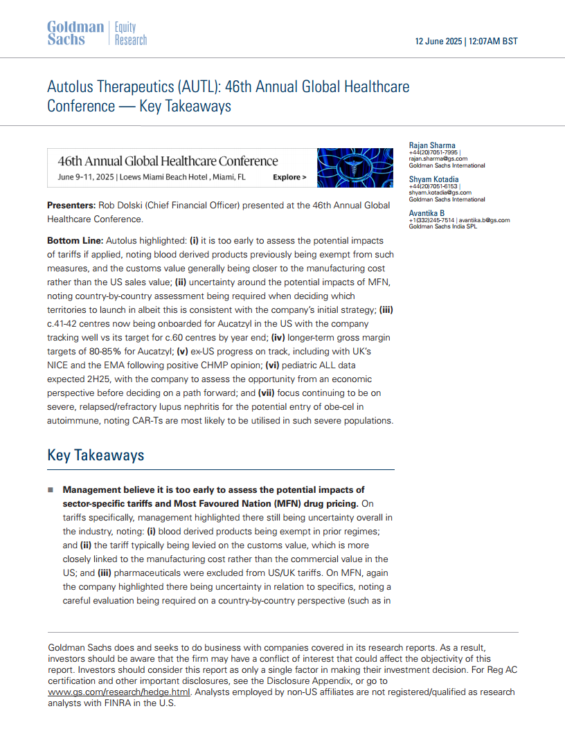 Autolus Therapeutics (AUTL):第46届全球医疗保健年会——要点