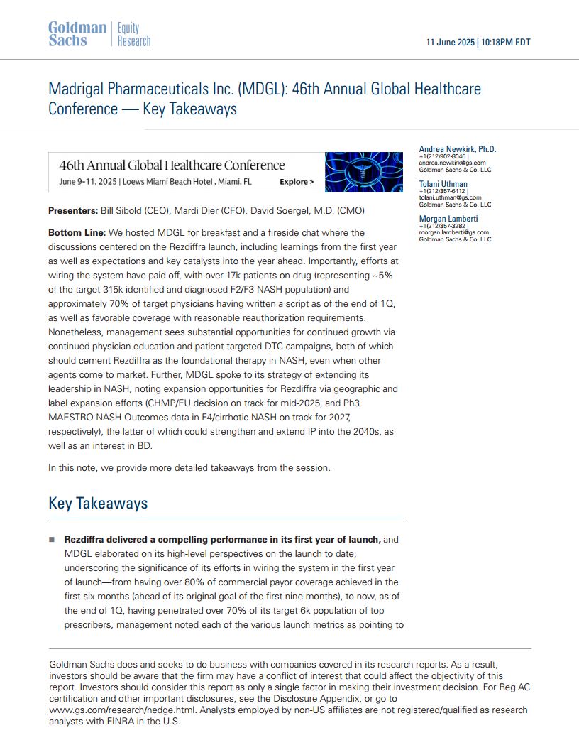 马德里加尔制药公司(MDGL):Madrigal制药公司(MDGL):第46届全球医疗保健年度会议——关键要点