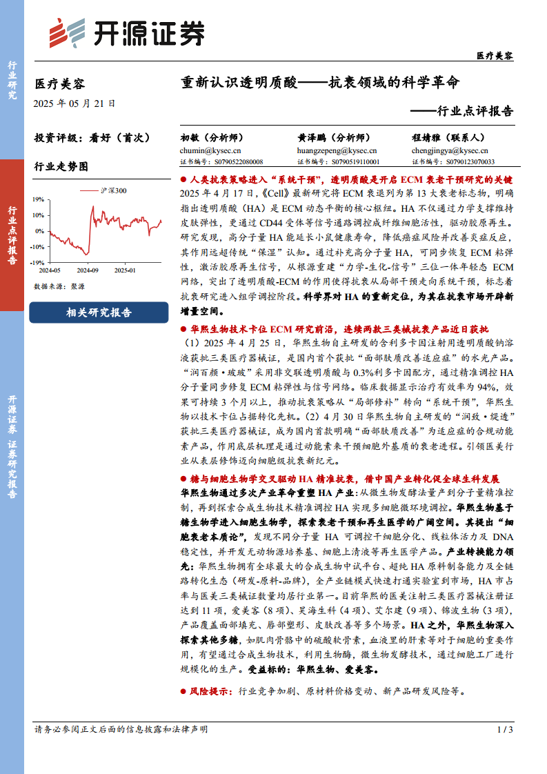 医疗美容行业点评报告:重新认识透明质酸——抗衰领域的科学革命