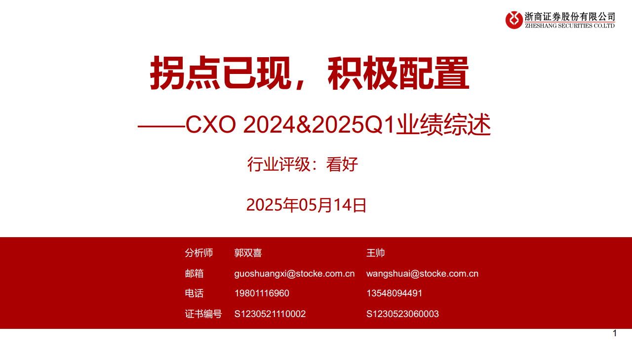 医药行业CXO+2024%Q1业绩综述:拐点已现,积极配置250514