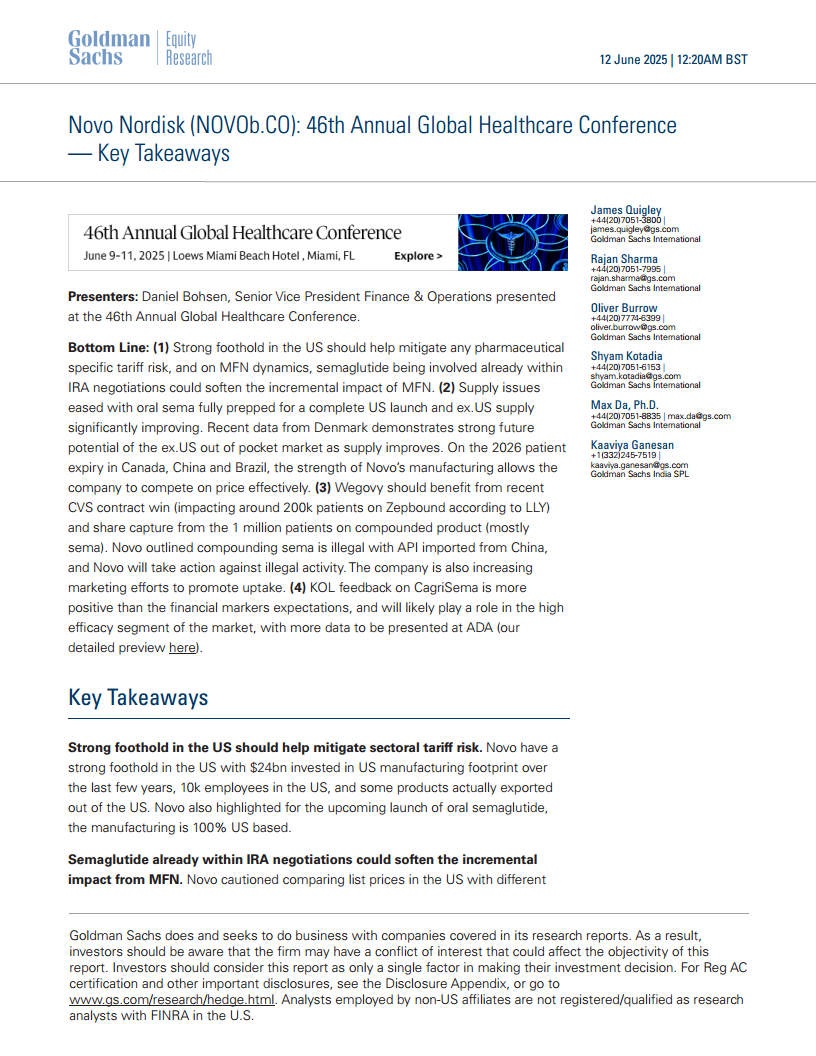 诺和诺德(NOVOB):诺和诺德(NOVOb.CO):第46届全球医疗保健会议—要点总结