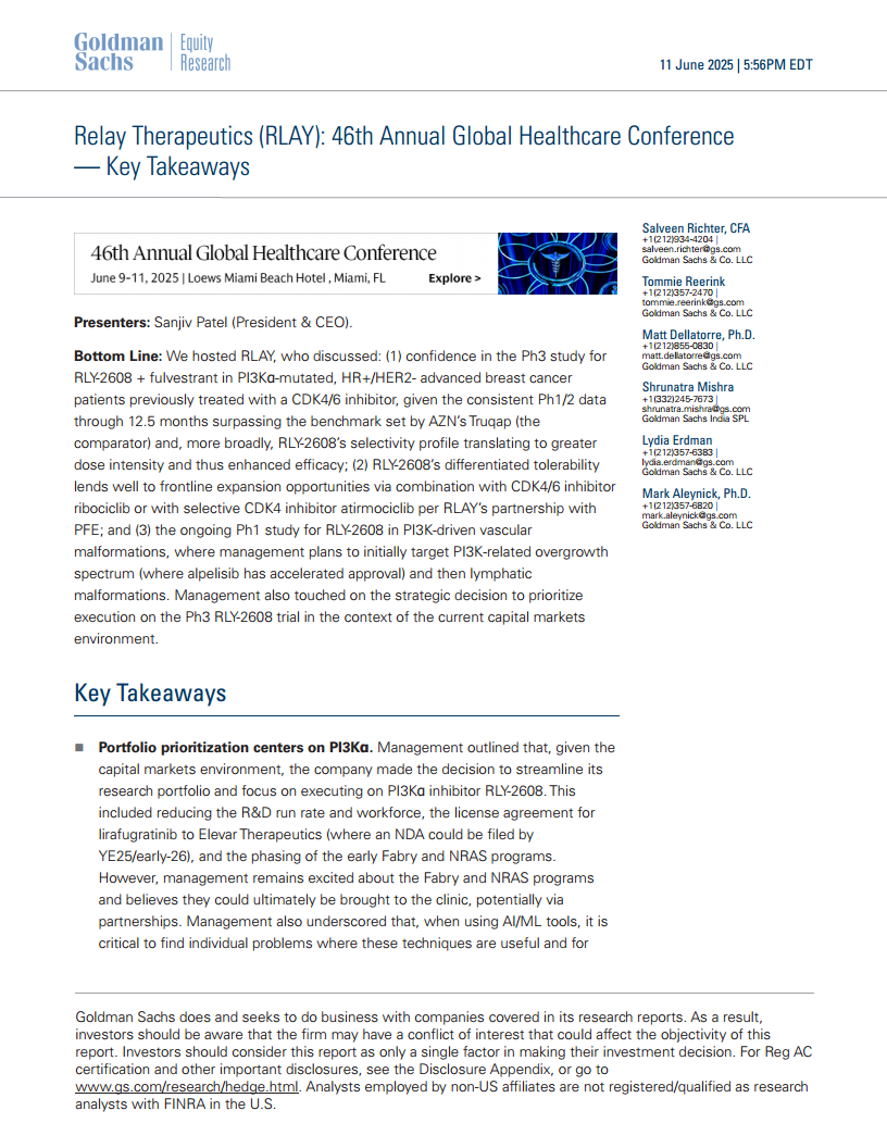 瑞雷治疗公司(RLAY):Relay Therapeutics (RLAY):第46届全球医疗保健年会——关键要点