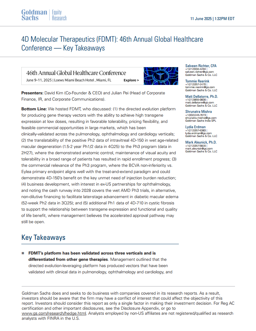 4D分子治疗公司(FDMT):第46届全球医疗保健年度会议——关键要点