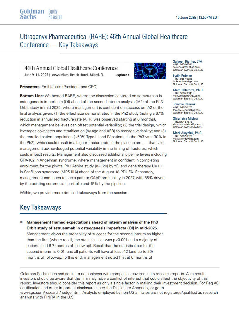 Ultragenyx制药公司(RARE):第46届全球医疗保健年度会议——关键要点