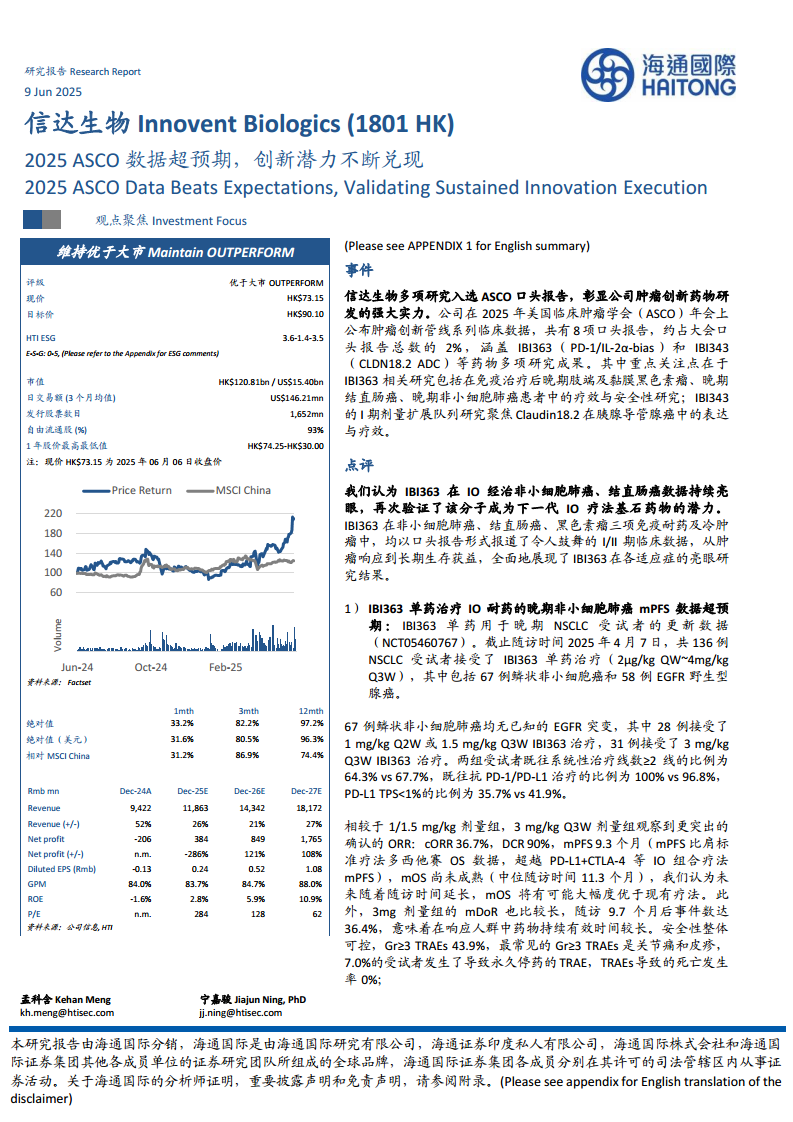 信达生物(01801):2025ASCO数据超预期,创新潜力不断兑现