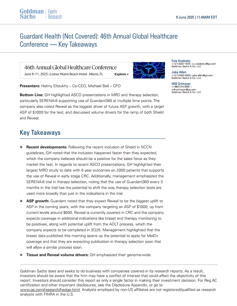 Guardant Health(未覆盖):第46届全球医疗保健年度会议——关键要点