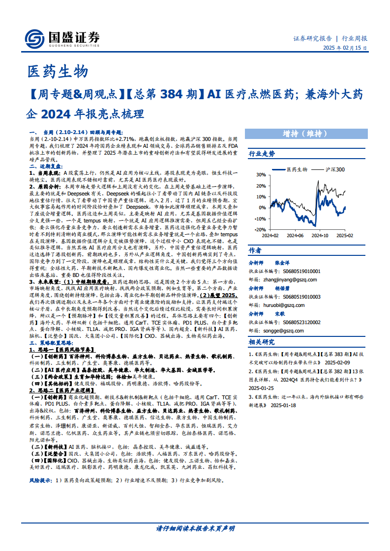 周专题、周观点:AI医疗点燃医药,兼海外大药企2024年报亮点梳理