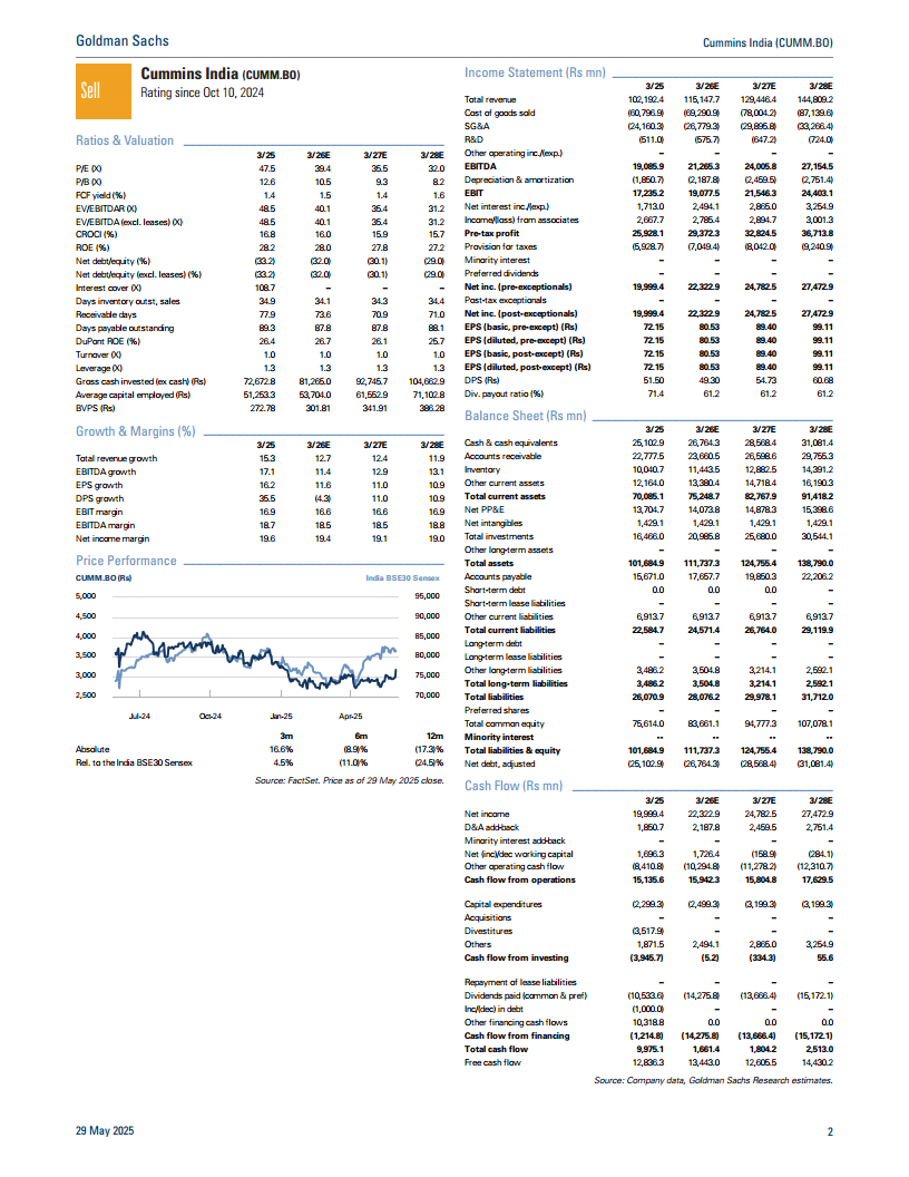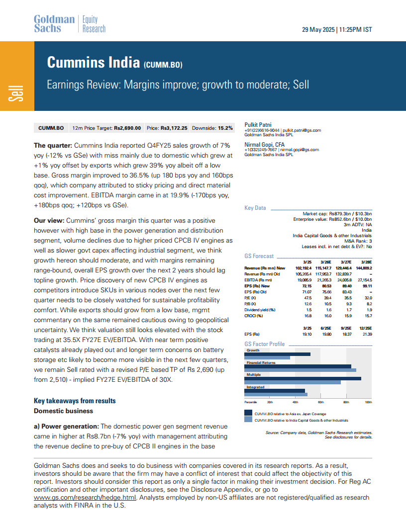 康明斯印度(CUMM):康明斯印度公司(CUMM.BO):收益回顾:利润率提高;增长趋于温和;卖出