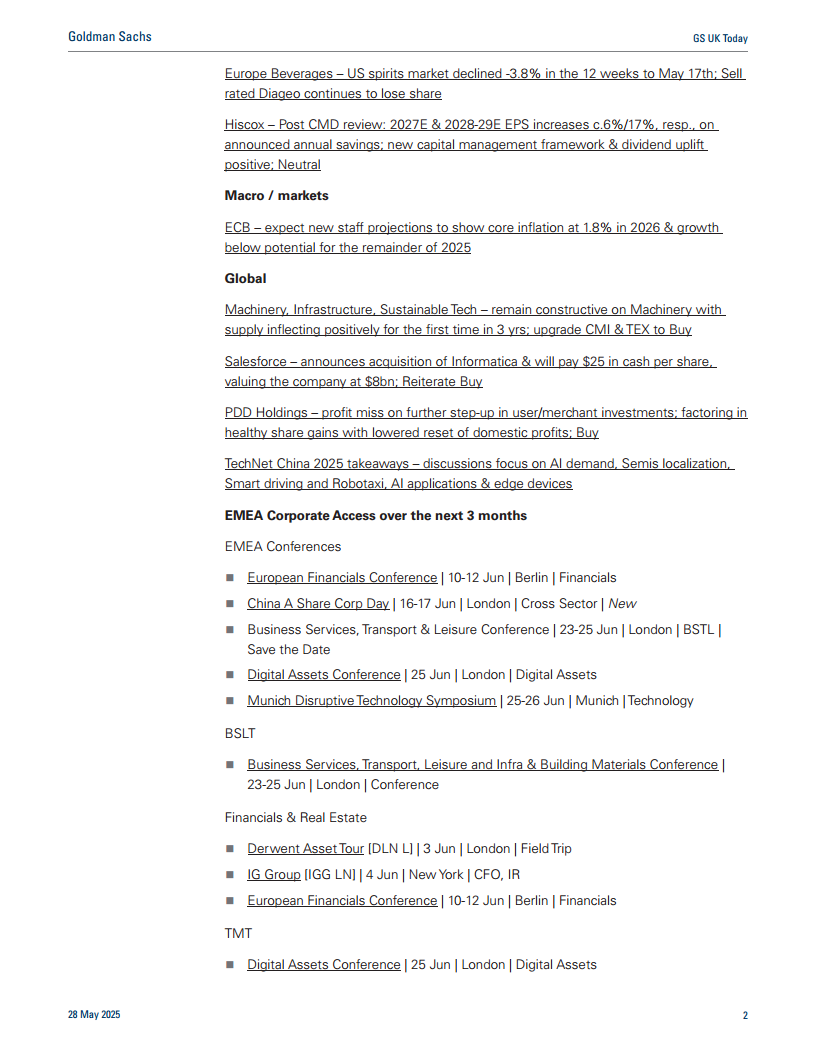 高盛在未来三个月内安排了多场企业交流活动,包括在柏林、伦敦和慕尼黑举行的欧洲金融、中国A股、商业服务、运输与休闲、数字资产和颠覆性技术等主题会议。此外,还组织了多场网络研讨会,涵盖大中华区科技、日本债券市场、全球科技硬件、能源转型中的核能、石油与能源投资以及未来工作等热门议题。这些活动旨在促进市场参与者与行业专家之间的深度交流,提供最新的市场洞察和投资策略。