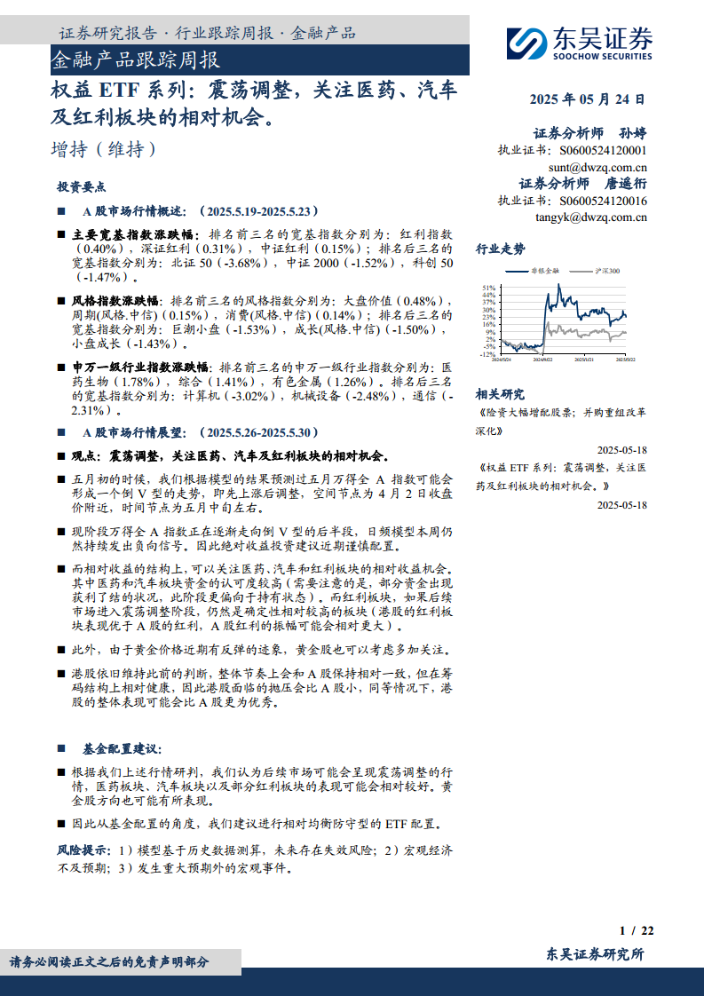 权益ETF系列:震荡调整,关注医药、汽车及红利板块的相对机会