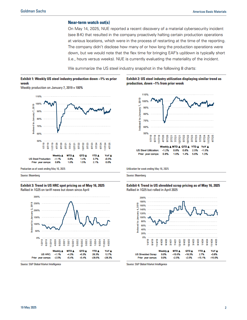 报告分析了不同类型钢厂的利润表现差异,其中电弧炉(EAF)钢厂的利润可能优于高炉(BOF)钢厂。同时,投资者对特定公司(如NUE和RS)的需求前景、商业模式及潜在风险保持高度关注,尤其是在近期网络安全事件背景下。