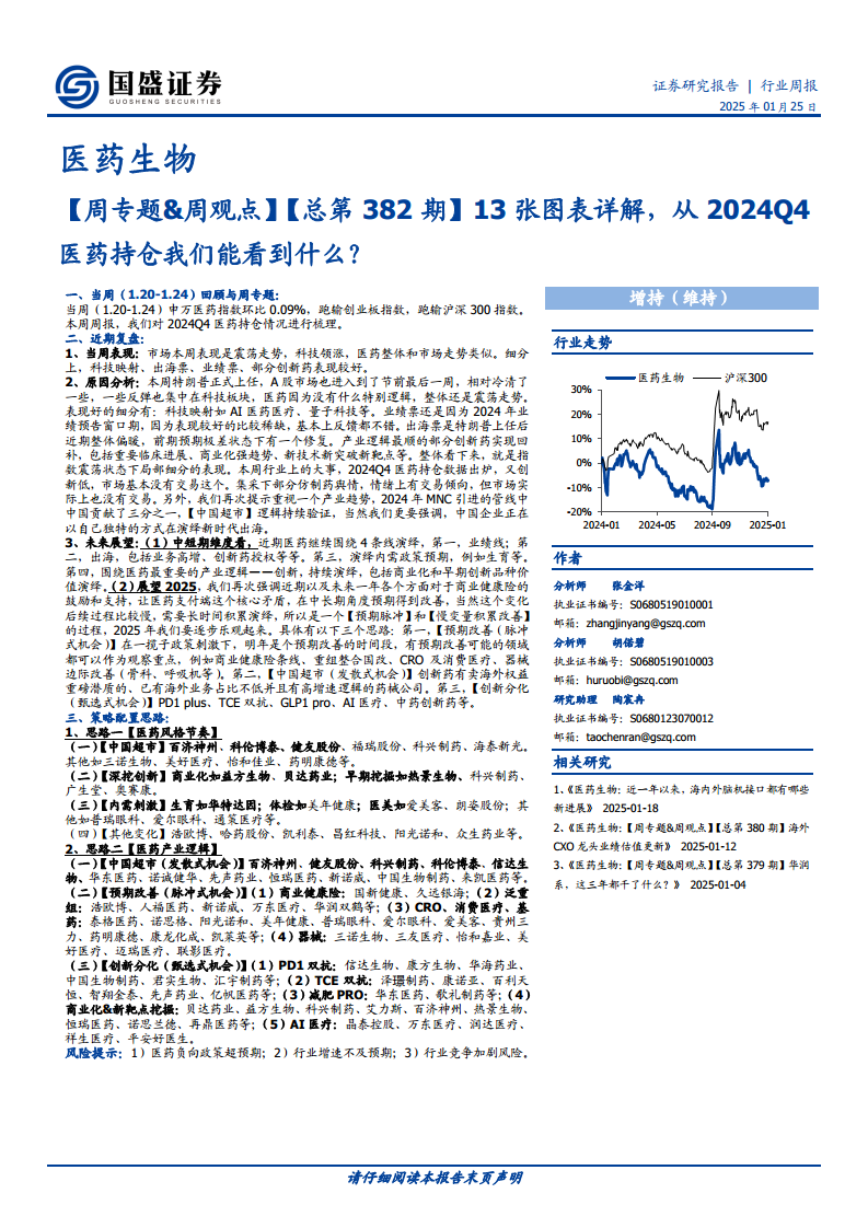 医药生物周专题、周观点:13张图表详解,从2024Q4医药持仓我们能看到什么?