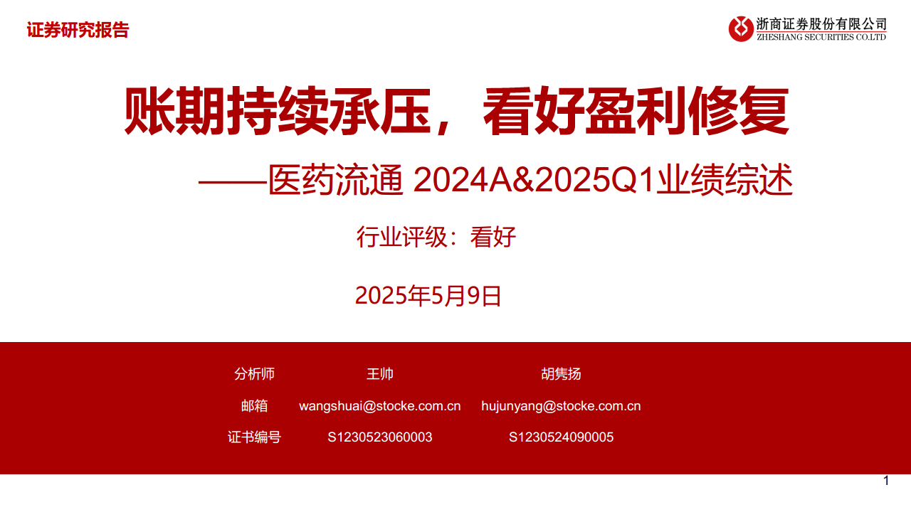 医药流通2024A、2025Q1业绩综述:账期持续承压,看好盈利修复
