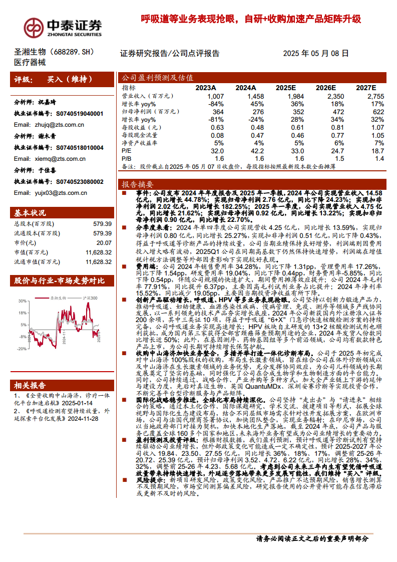 圣湘生物在2024年及2025年一季度展现出强劲的增长势头,营业收入和扣非净利润均实现显著增长,尤其在呼吸道和HPV等核心诊断业务领域表现突出。公司通过持续的研发投入和创新产品推出,如“6+X”呼吸道检测方案和HPV 13+2核酸检测试剂,有效巩固了市场地位并提升了盈利能力。