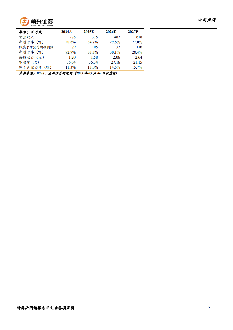 基于公司在神经外科高值耗材领域的深耕、核心产品市场份额的提升潜力以及新产品的增长动能,分析师维持了“买入”评级。考虑到公司盈利能力的持续提升,分析师上调了公司的盈利预测。预计公司2025-2027年归母净利润分别为1.05亿元、1.37亿元和1.76亿元,同比增速分别为33.3%、30.1%和28.4%。对应的P/E估值分别为35.34倍、27.16倍和21.15倍。