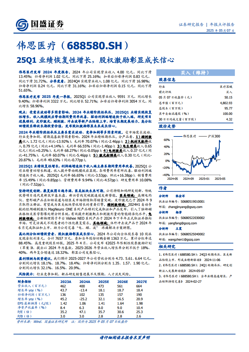 伟思医疗(688580):25Q1业绩恢复性增长,股权激励彰显成长信心