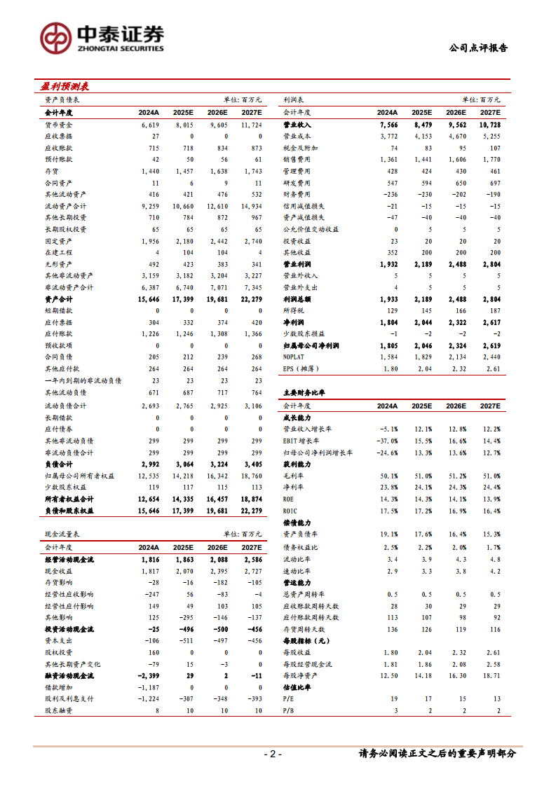 尽管2024年公司毛利率因业务结构变动略有下降,且销售、管理、研发费用率有所提升,导致净利率下滑,但这反映了公司在市场拓展和技术创新方面的战略性投入。随着高毛利产品占比的不断提升,以及规模效应的逐步显现,预计公司未来的盈利能力将持续优化。分析师维持“买入”评级,看好公司作为行业龙头,有望直接受益于医疗器械行业的快速发展,并实现实验室盈利能力的持续提升。