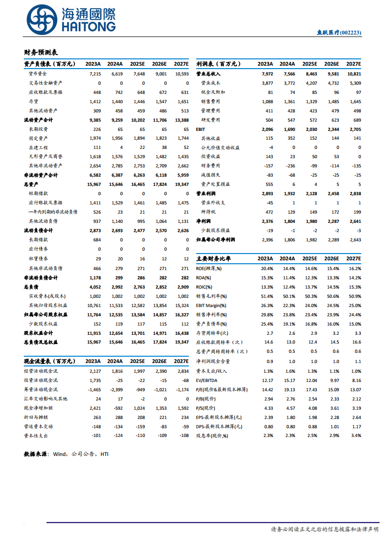 投资评级与财务预测调整 报告维持鱼跃医疗“优于大市”的投资评级。基于对公司未来业绩的审慎评估,分析师下调了2025-2026年的每股收益(EPS)预测至1.98元和2.28元(原预测为2.48元和2.85元),并新增了2027年EPS预测为2.64元。目标价相应下调8%至45.47元,该目标价是基于2025年23倍的市盈率(PE)估值。