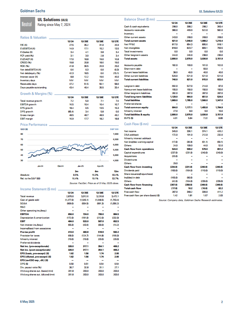 UL Solutions重申了2025年全年业绩指引,高盛也相应调整了其财务预测,并对公司的估值和风险进行了深入分析。