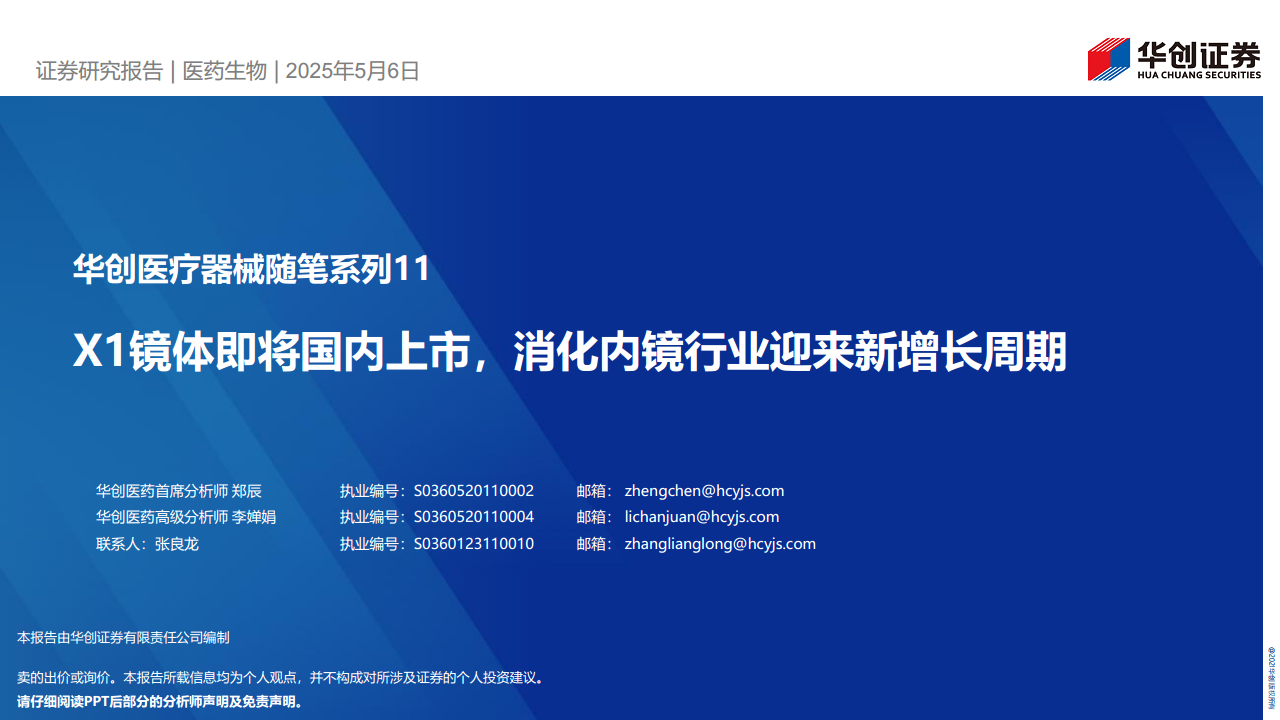 华创医疗器械随笔系列11:X1镜体即将国内上市,消化内镜行业迎来新增长周期