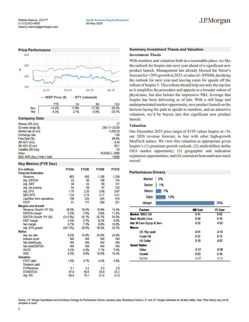 阻塞性睡眠呼吸暂停(OSA)市场规模庞大且渗透率低,为Inspire Medical提供了显著的长期增长机遇。公司持续的“超出预期并上调指引”的良好记录,以及在地理和适应症方面的扩张潜力,进一步巩固了其市场地位。尽管目标价因市场可比公司估值调整而下调,但J.P. Morgan认为在当前估值水平下,Inspire Medical的股票仍具有吸引力,尤其是在新产品发布带来的上行潜力背景下。