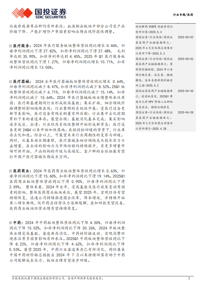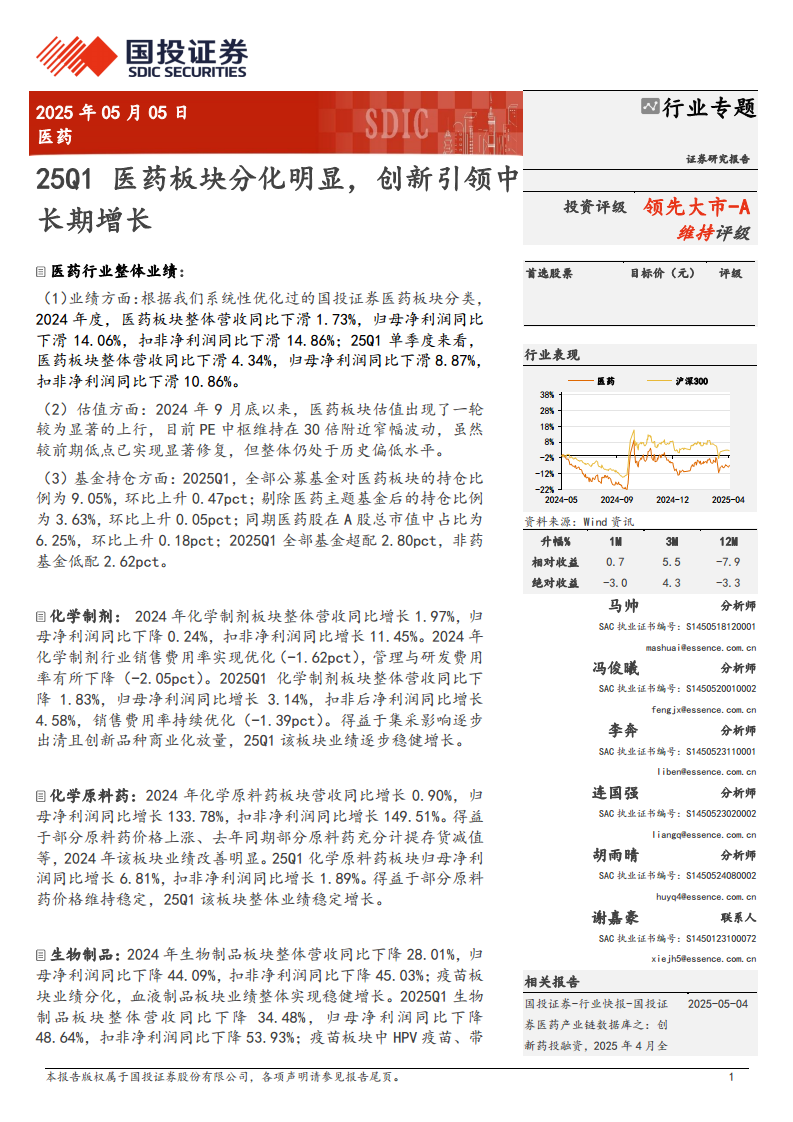 医药行业专题:25Q1医药板块分化明显,创新引领中长期增长