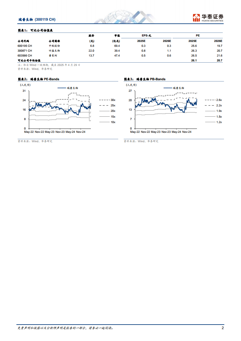 华泰研究基于瑞普生物稳健的经营表现和清晰的成长路径,维持了“买入”评级,并上调目标价至25.80元人民币。这一估值逻辑充分考虑了公司在宠物板块的领先布局以及畜禽主业的良好经营态势,给予了高于可比公司平均水平的市盈率,体现了市场对其未来成长潜力的积极预期。