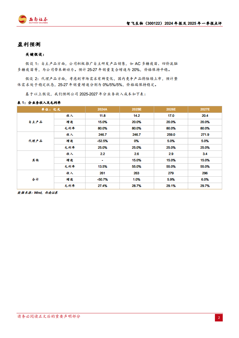 根据盈利预测,公司预计在2025-2027年实现每股收益(EPS)分别为1.18元、1.40元和1.54元,显示出分析师对公司未来业绩恢复和增长的信心。这一预测基于关键假设:自主产品方面,预计2025-2027年销量复合增速为20%,价格保持平稳;代理产品方面,考虑到市场需求变化和国内竞争,预计2025-2027年销量增速分别为0%、5%和5%,价格端保持稳定。预计公司总收入将从2024年的261亿元增长至2027年的296亿元,毛利率也将逐步提升。