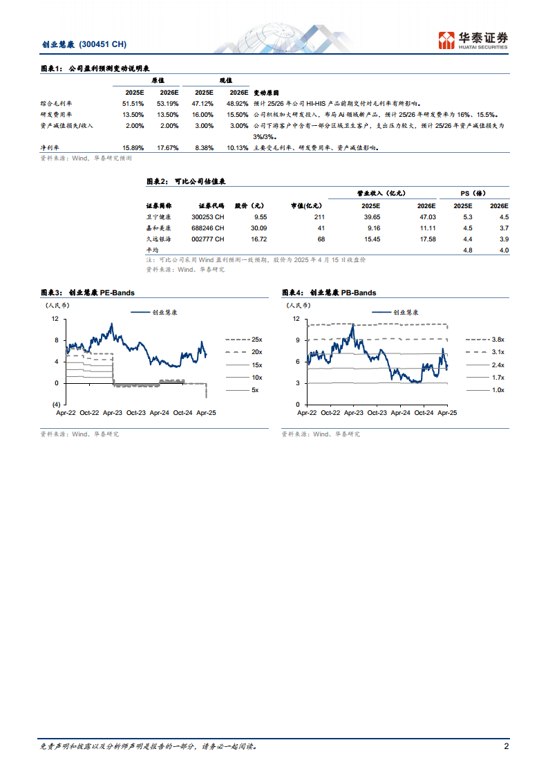 考虑到区域卫生客户预算承压,华泰研究调整了公司2025-2027年的收入预测,分别为16.07亿元、18.21亿元和20.71亿元(前值为25-26年19.23亿元/22.33亿元)。参考可比公司Wind均值4.8倍25PS,并考虑到公司HI-HIS新产品加速推广,给予公司6.5倍25PS,目标价为6.75元人民币(前值为6.82元,对应35x 25PE,可比均值29x),维持“买入”评级。