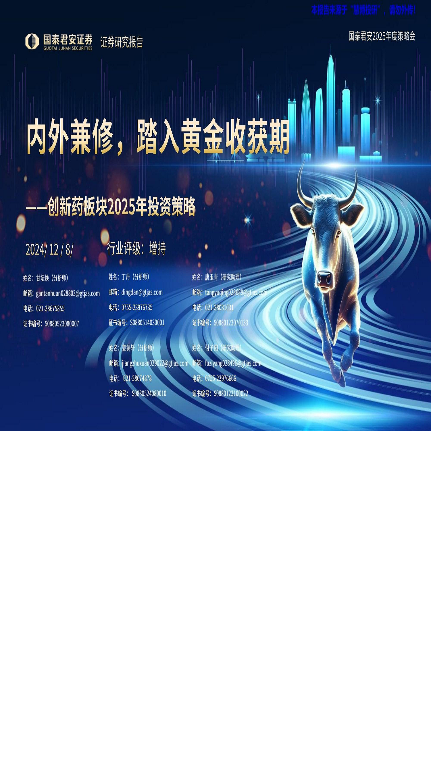 创新药行业板块2025年投资策略:内外兼修,踏入黄金收获期