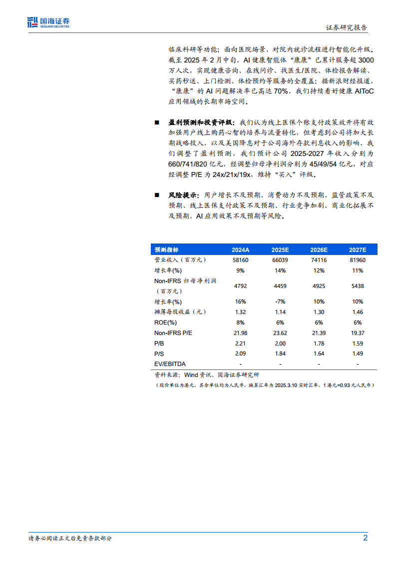 基于对公司业务发展和市场环境的综合分析,国海证券对京东健康进行了盈利预测调整并维持了“买入”评级。